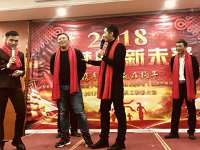 20日,上午10点30分至11点30分,近80名湖南迪乐、翰哲、讯畅家人们陆续抵达长沙五星级农庄——绿世界生态艺术农庄,进行2018年公司年会的签到仪式,绿世界美食城用完原汁原味的农家风味午餐后,13点30分于会议中心七号贤达厅正式开始年会会议活动!本次年会活动由曾彩强、胡巧、刘思哲三位担任主持,先后有迪乐的齐总、讯畅华总、翰哲的军总进行2018年年会致辞,寄语新年祝福与希望!